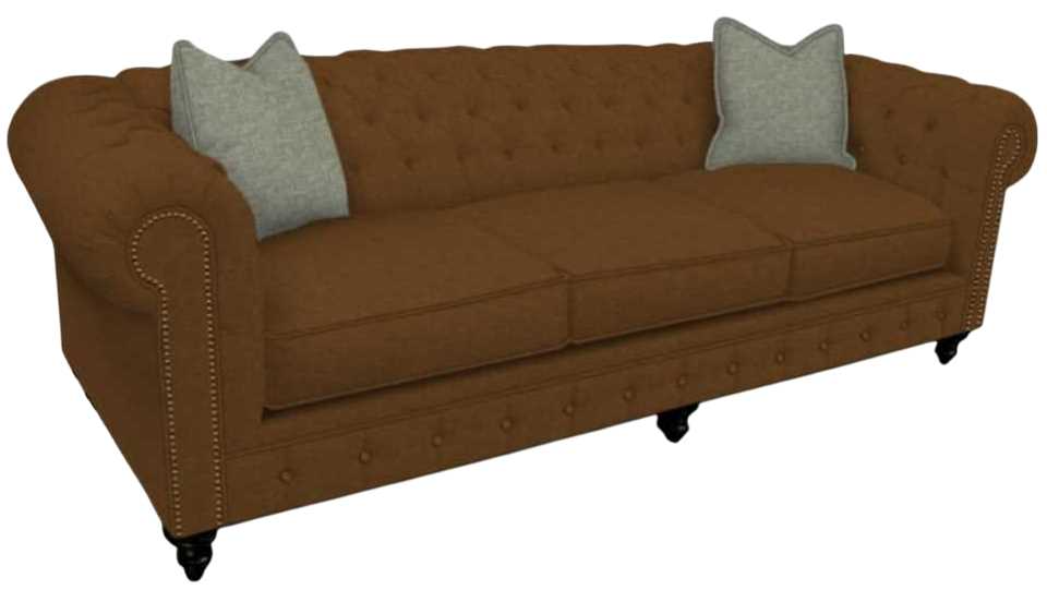 Our Rondell collection is our interpretation of the iconic English Chesterfield. This classic style features a beautifully tufted back and inside arm, simple front rail with button accents, a large rolled shelter arm accented with optional petite antique bronze nail heads, and an intricate turned wooden leg.Read More