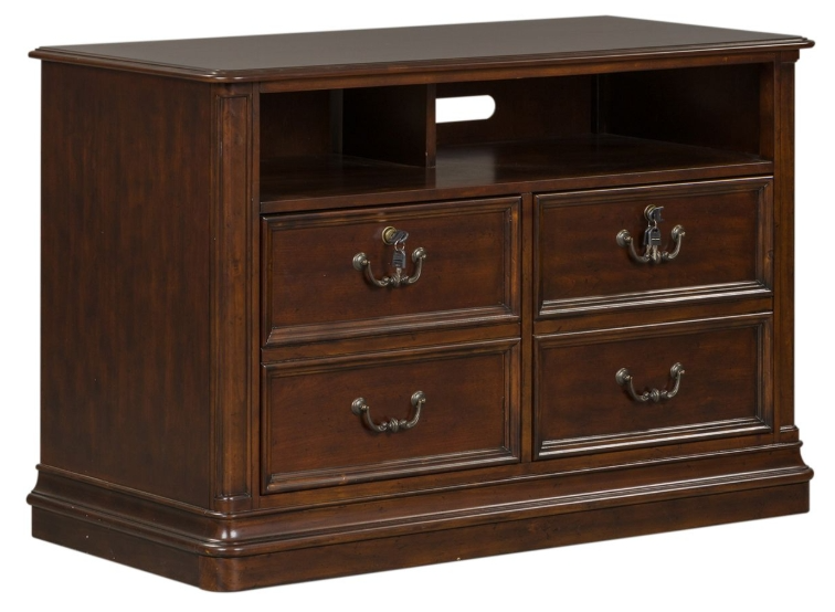 Work from home or the office in style with the Brayton Manor Jr executive media lateral file. Crafted of poplar solids with cherry and birch veneers, this piece features a cognac finish, two full extension locking file drawers with bluff-cut drawer fronts for easy access to storage and to protect confidential documents.Read More