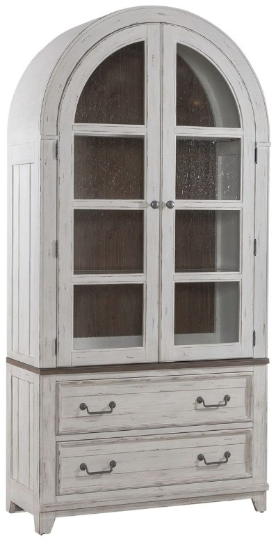 Designed to entice a sense of calm and tranquility into interior spaces, the River Place curio cabinet strikes the perfect balance of life on the coast and a comfy home tucked away in the hills. Crafted with pine solids and veneers, this curio cabinet features a heavily distressed riverstone white and tobacco finish.Read More